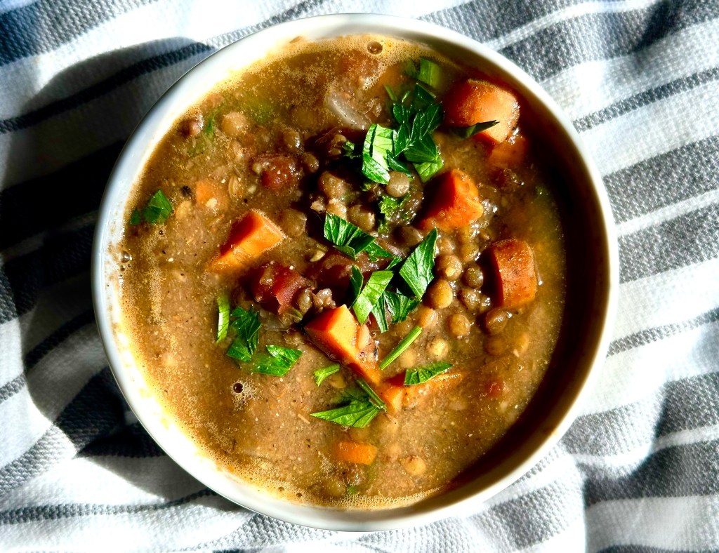 This hearty and healthy lentil soup comes together easily with a few pantry staples, dried lentils, and flavorful spices. It’s simple, nourishing, and most importantly, delicious.