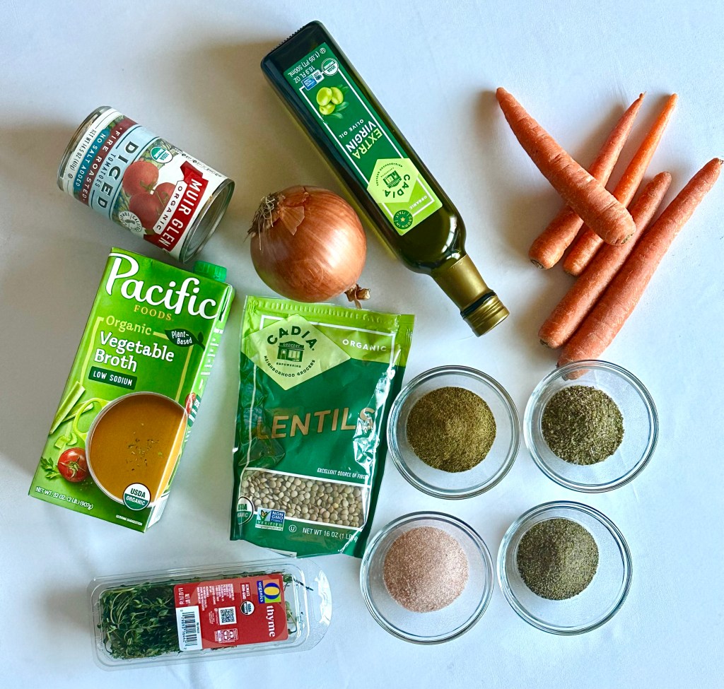 Here’s what you’ll need to make this delicious lentil soup recipe. (I guarantee you probably already have some in your pantry!)