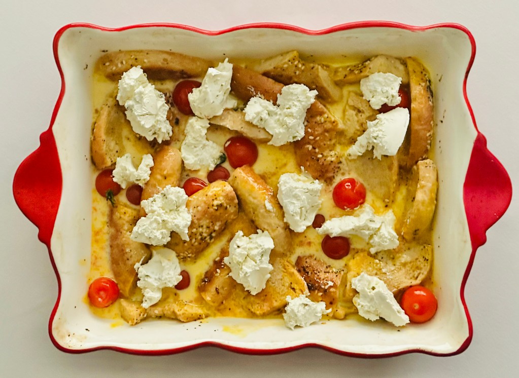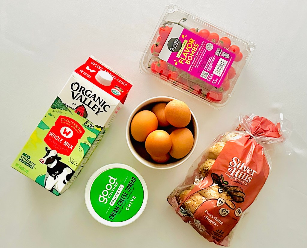 Elevate your brunch game with this super low-effort, delicious dish that’s sure to feed (and please!) a crowd. It’s packed with flavor from the everything bagels and the scallion cream cheese, and the juicy grape tomatoes add a nice pop of color. It’s the perfect dish for a brunch with friends or just for your average Saturday.