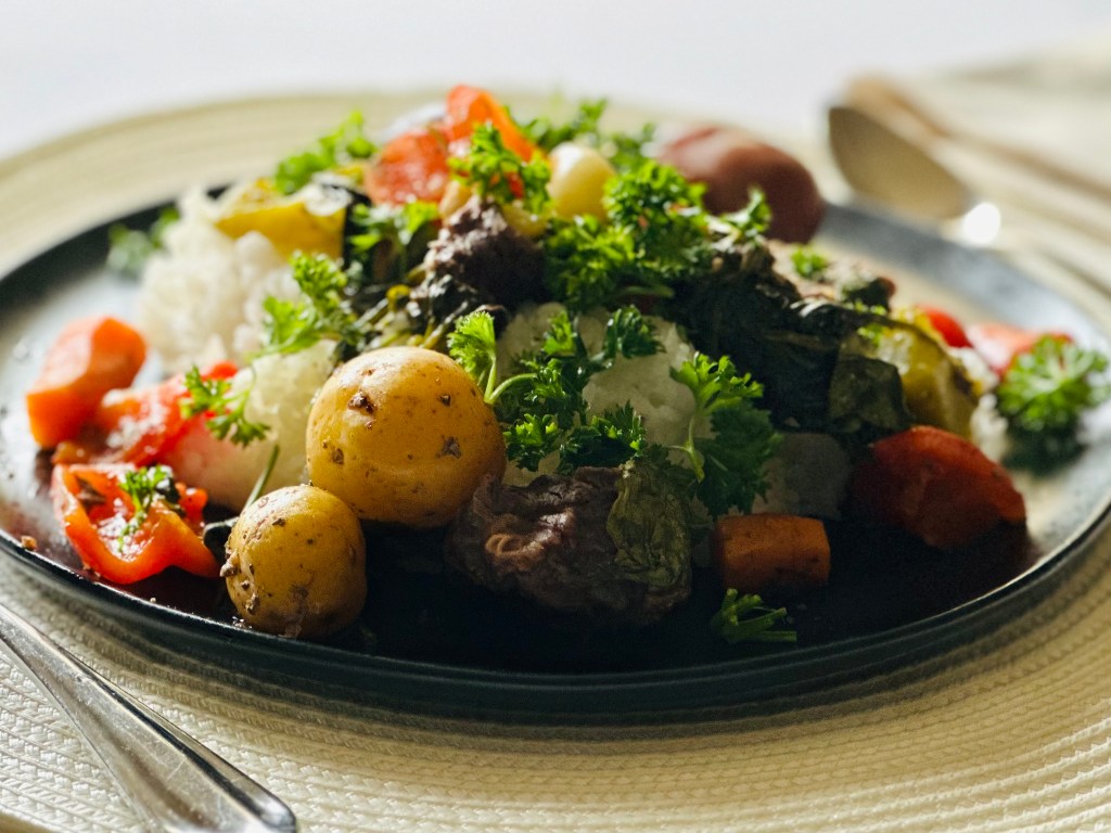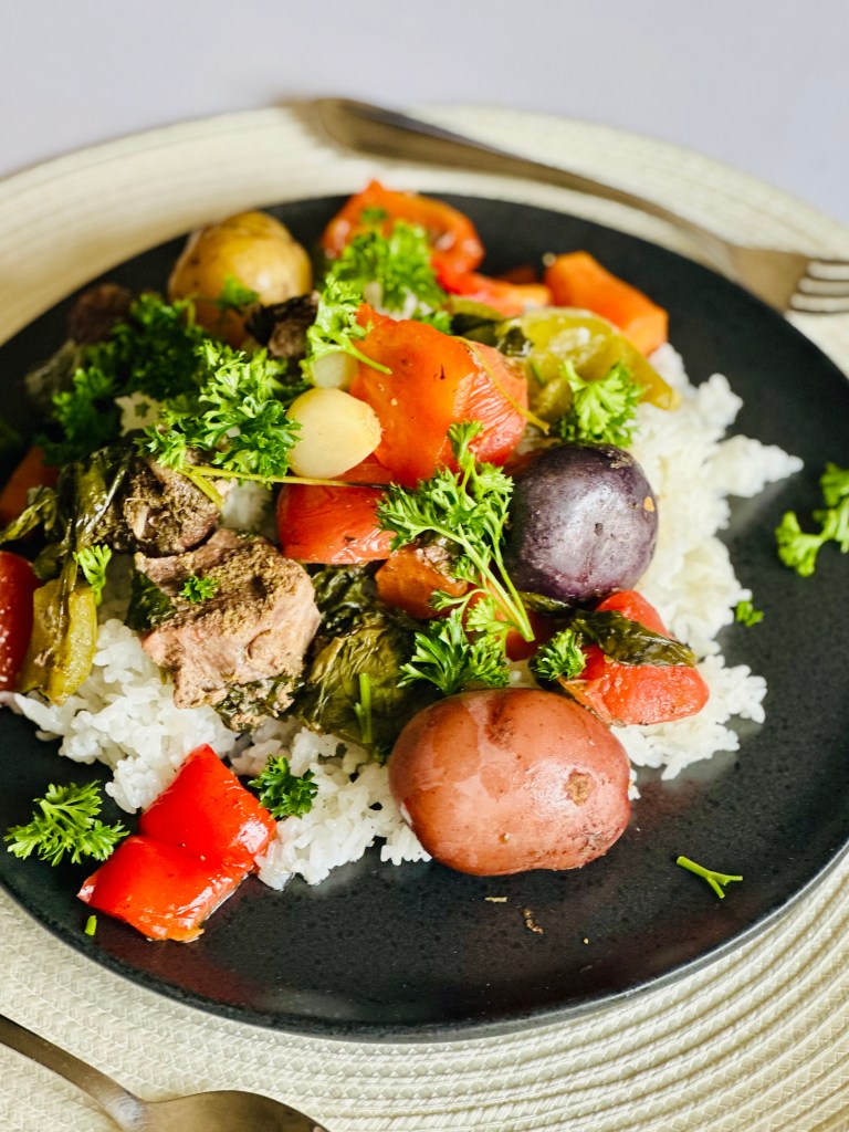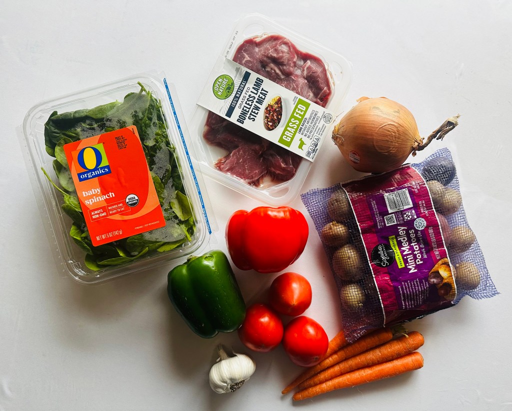 - Vegetables: You can choose your own variety of veggies to cook with the meat! For this recipe, we used baby spinach, bell peppers, onions, tomatoes, carrots, and baby potatoes. You can also use mushrooms, green beans, and corn, to name a few other suggestions.